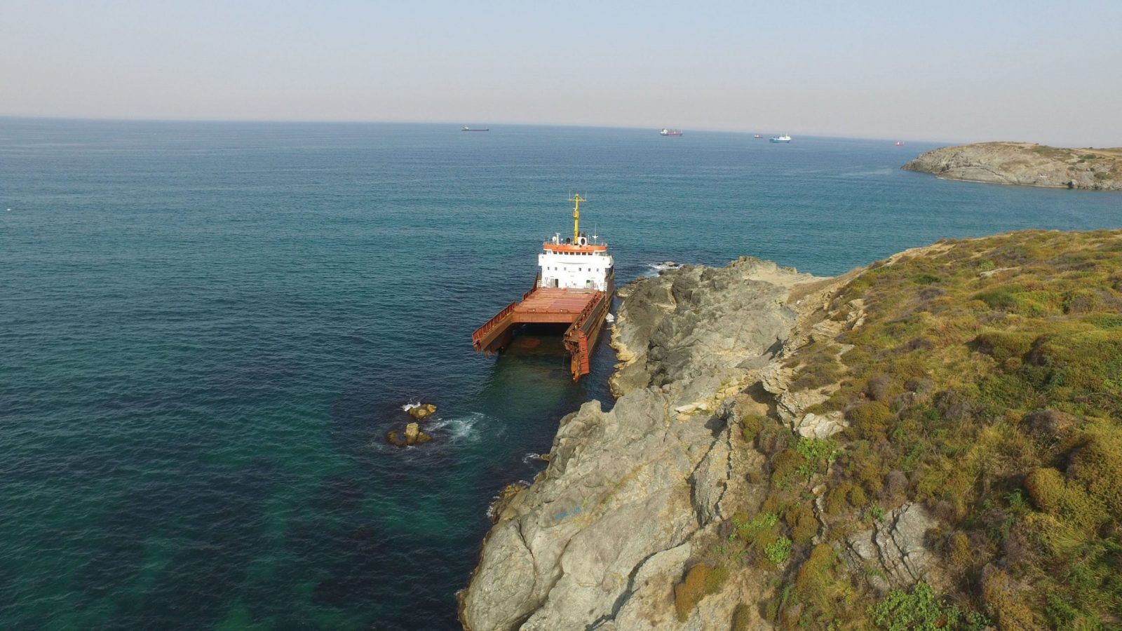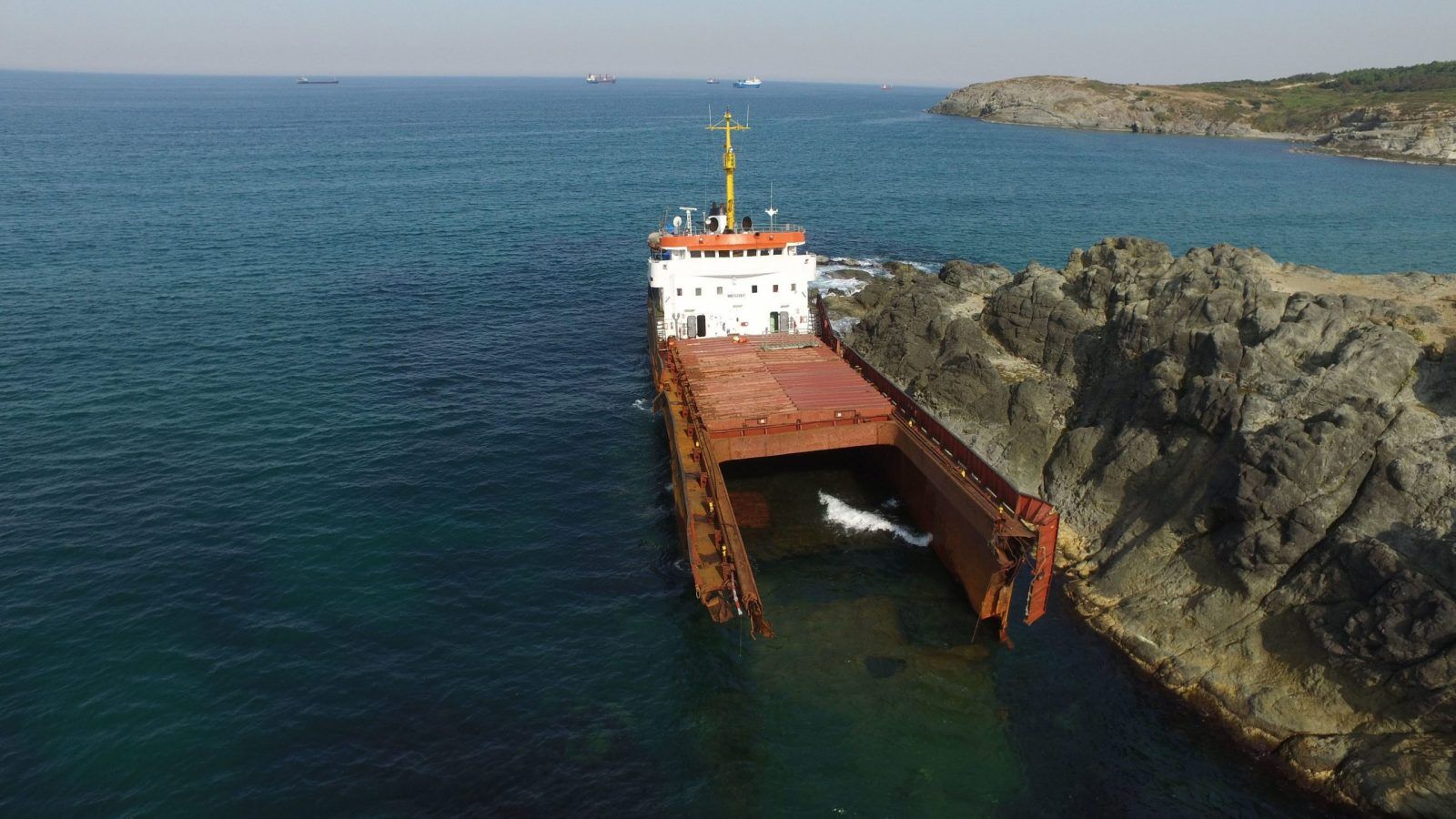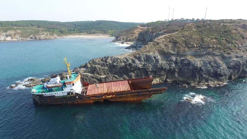 Baş tarafı kıyıdan yaklaşık 1 deniz mili açıkta batan geminin karaya oturmuş haldeki bölümünün, kışın gelmesiyle tamamen parçalanma riski var.